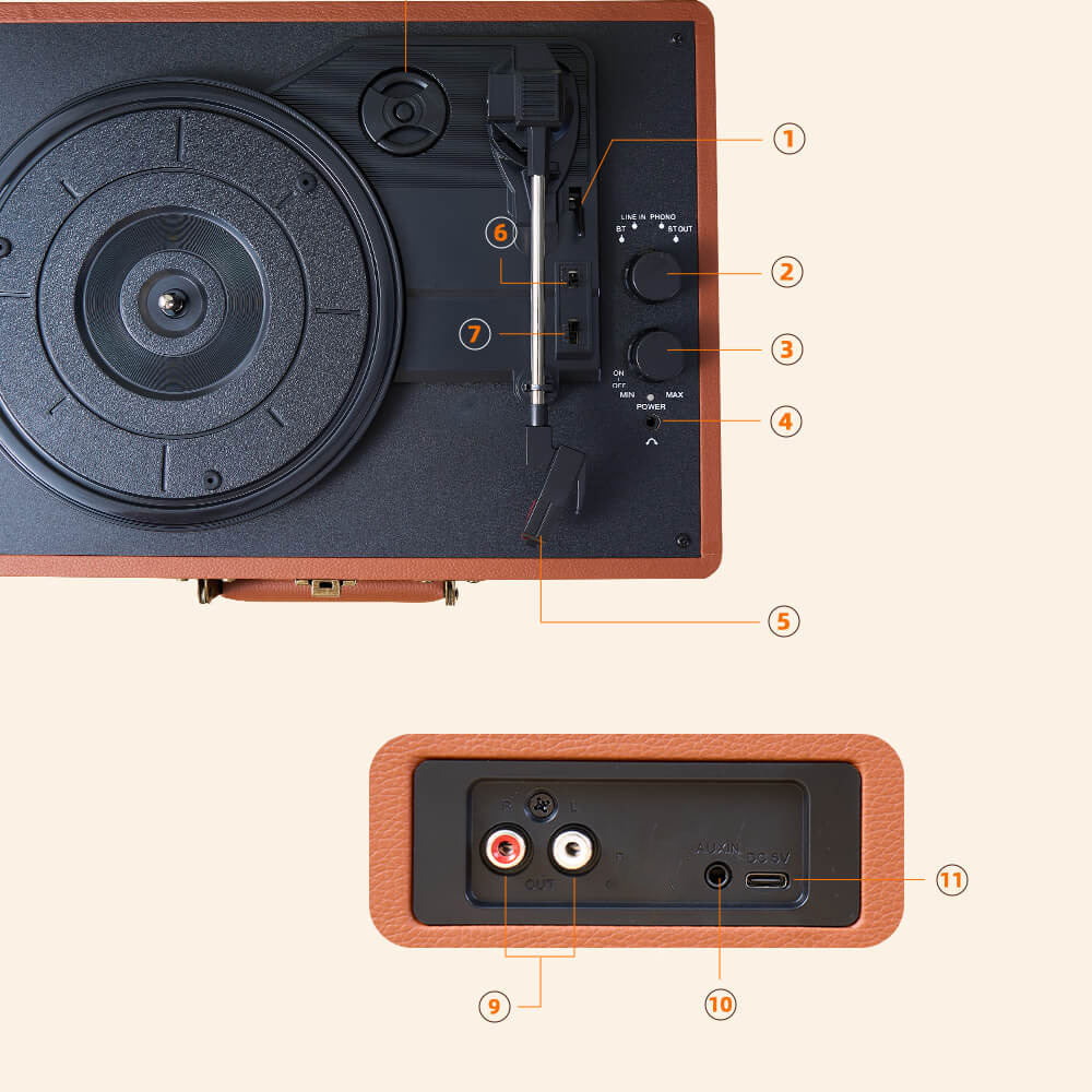 Record Compatibility: Supports vinyl records, coloured vinyl records and thin film records