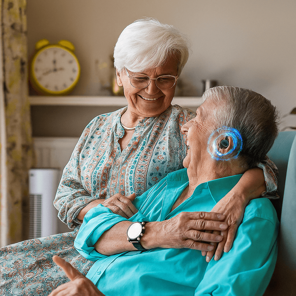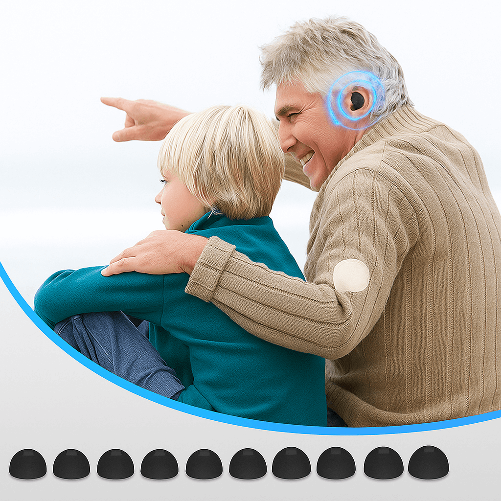 ⚠️ When wearing the device, make sure the hearing aid is turned off or set to the lowest volume.