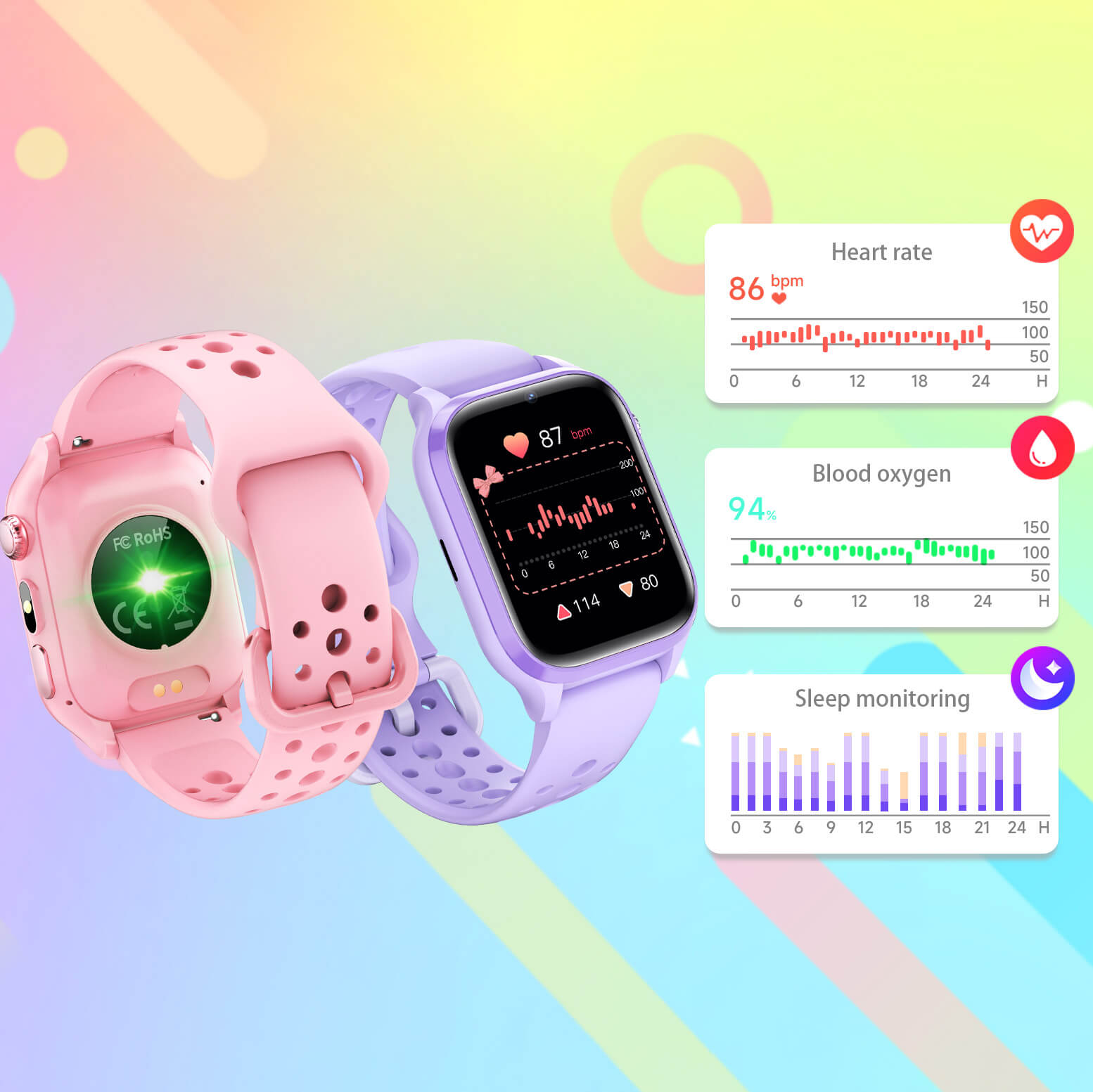 Accurate monitoring of heart rate, blood oxygen, and sleep ensures the health of your baby.
